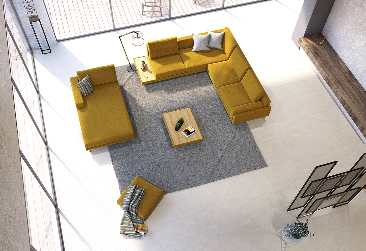 Vsak sedežni element ima lahko vgrajen odprt element oz. zakljucek (skupna blazina s sedežem) poljubne širine.