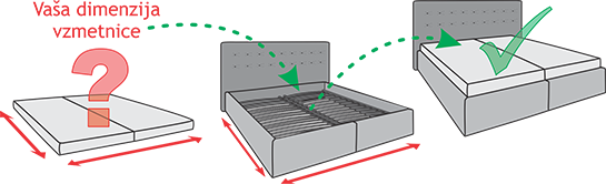 Standardna notranja dolžina za vzmetnice je 190 in 200cm po širini pa dimenzije 90, 120, 140, 160, 180 in 200cm.