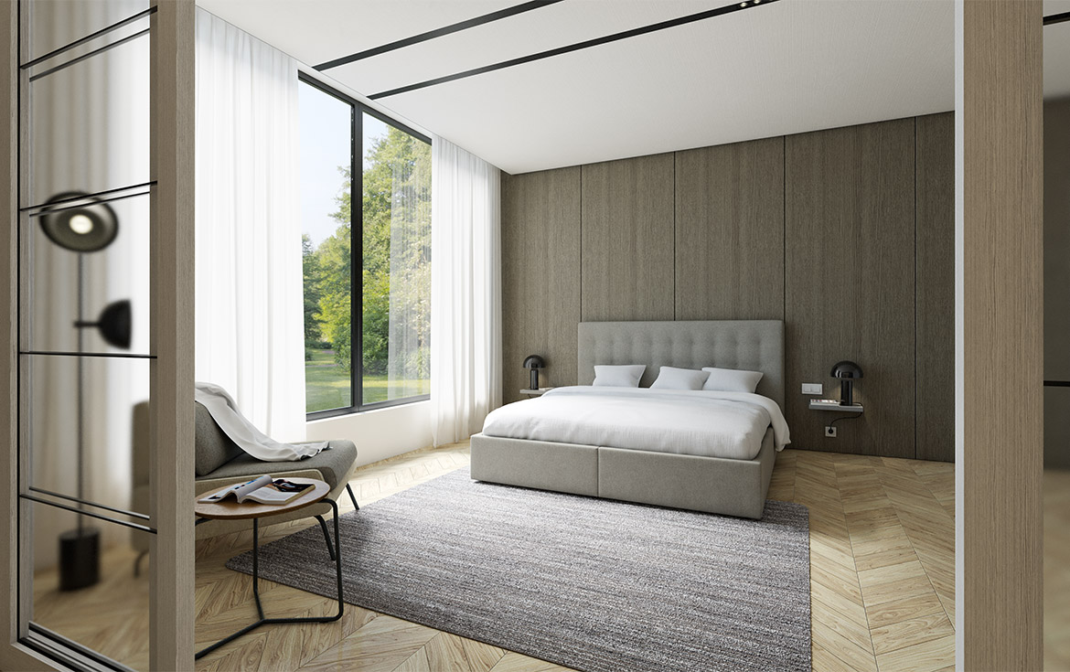 Vzglavna stranica je mehko oblazinjena, debeline 12cm in nudi prijetno oporo hrbtnemu delu. Če imate malo prostora ali če želite bolj kvadraten izgled postelje se lahko vzglavno stranico izdela v takšni dolžini, da je poravnana z obodom postelje.