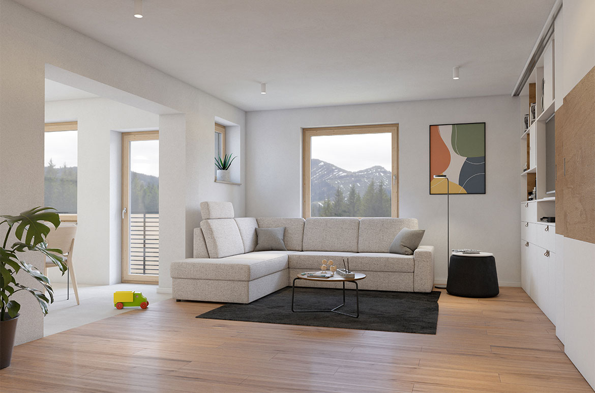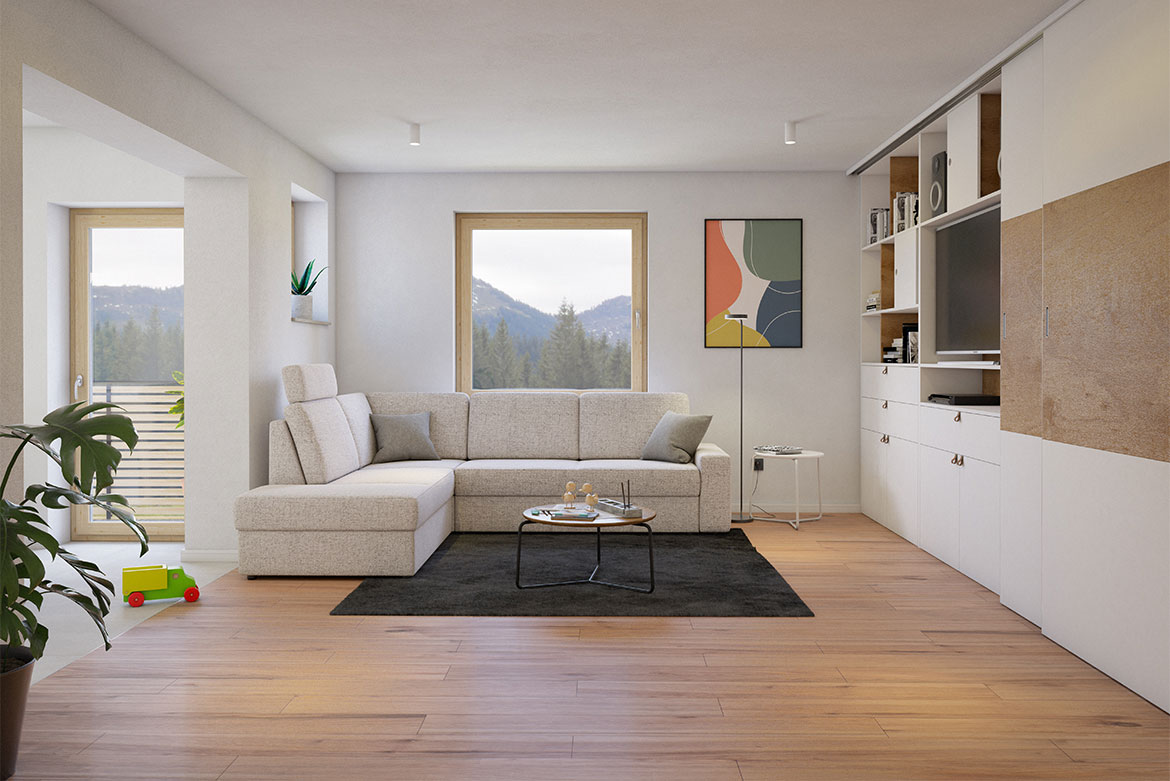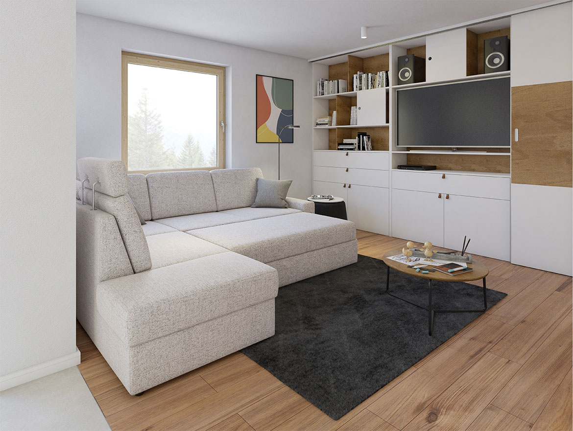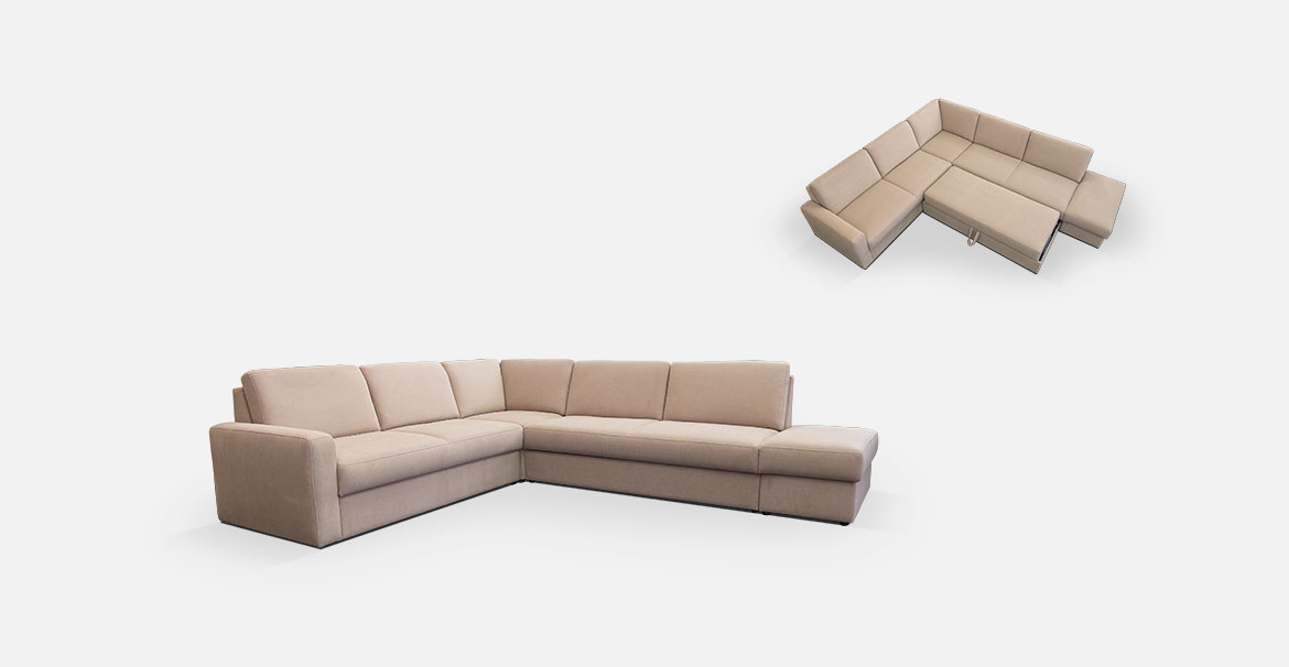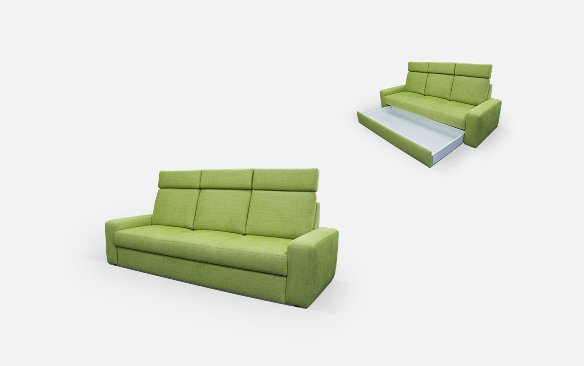 Izvlečno ležišče se lahko vgradi v poljubni element sedežne garniture (trosed, dvosed, kotna izvedba, U postavitev) v poljubni velikosti.