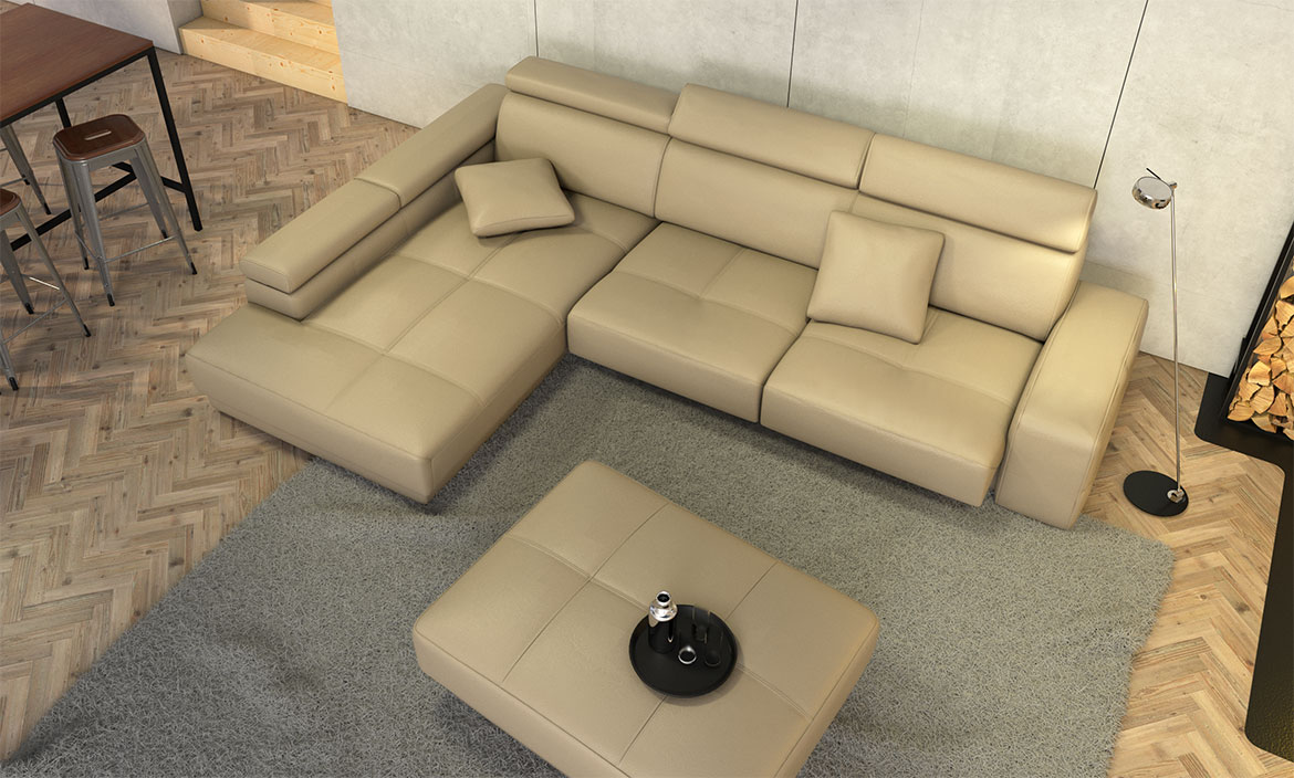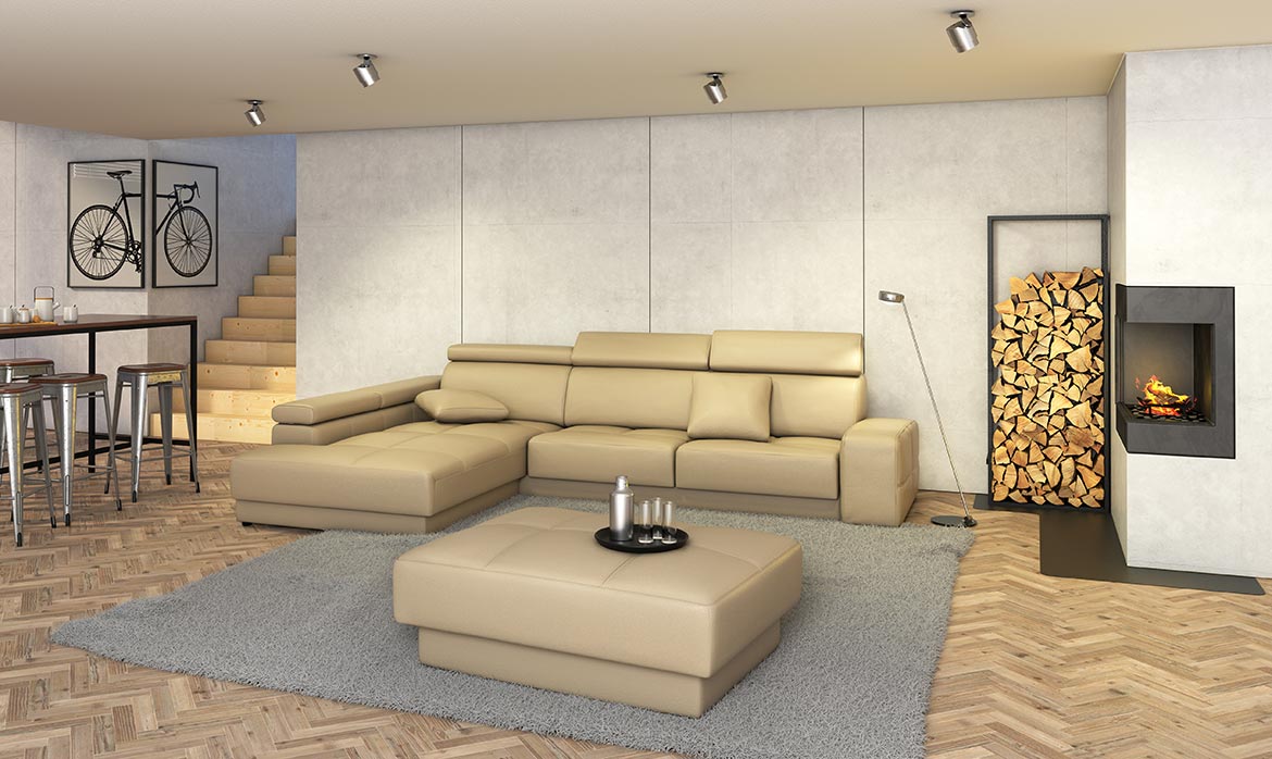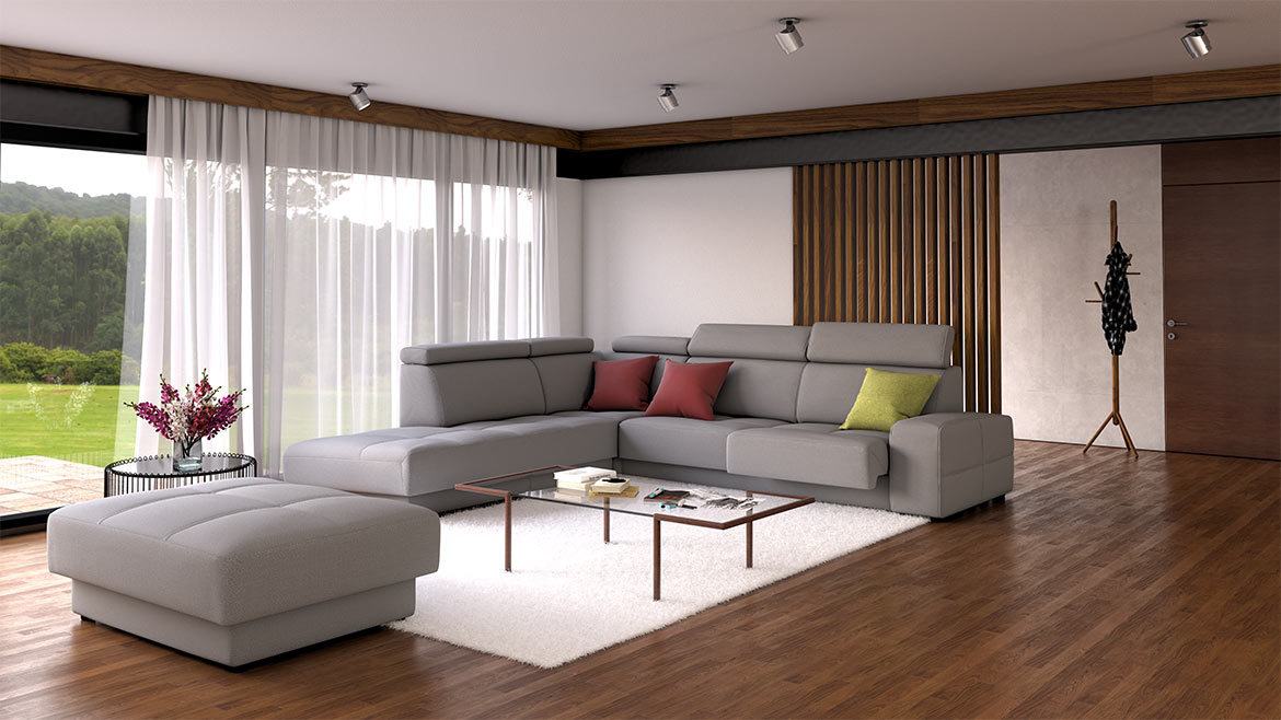 Sedežna garnitura Cardiff z mogočnimi potezami pričara občutek nepremagljivosti.