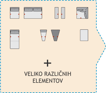 Dimenzije posameznih elementov je mogoče dodatno prilagodi, glede na vaš razpoložljiv prostor.