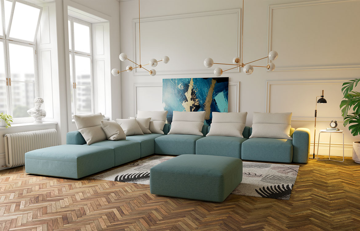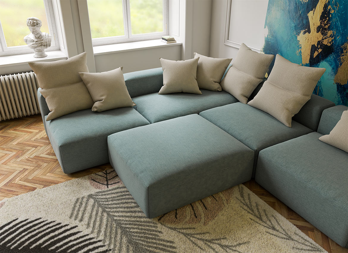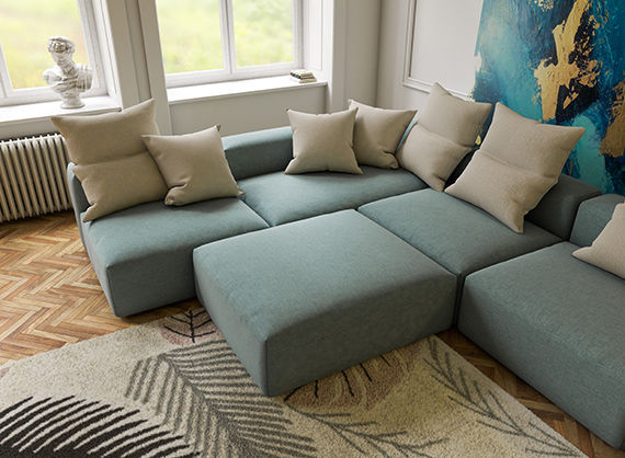 Elemente lahko združite v veliko površino in si tako ustvarite prostor za počitek ali udoben kotiček za razvajanje.
