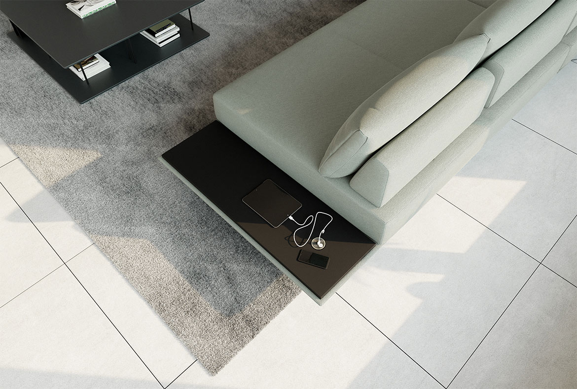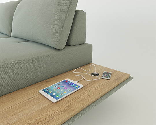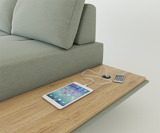 Elementu s polico lahko vgradimo brezžični polnilec, ki vsebuje tudi opcijo polnjenja preko USB kabla za mobilne naprave.