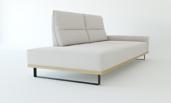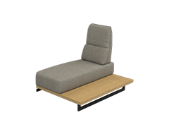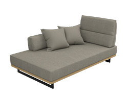 Kotni ležalnik ali enosed ležalnik z ročnim opiralom je popoln element v kotnem sestavu, idealen za večerna razvajanja v dvoje. Izdela se ga lahko poljubne širine in dolžine. Ročno opiralo nam omogoča, da si lahko s pomočjo dodatne blazine nastavimo oporo za roko ali glavo.