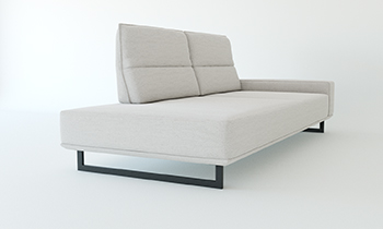 Sestav lahko zaključimo z izbiro pregibne stranice, ki omogoča natančno stopenjsko nastavitev naklona. Stranica je udobno oblazinjena in nam lahko služi kot vzglavnik, rokonaslon ali dodaten naslon, ki spremeni zaključek v udoben kotiček.