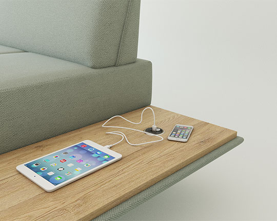 Elementu s polico lahko vgradimo brezžični polnilec, ki vsebuje tudi opcijo polnjenja preko USB kabla za mobilne naprave.