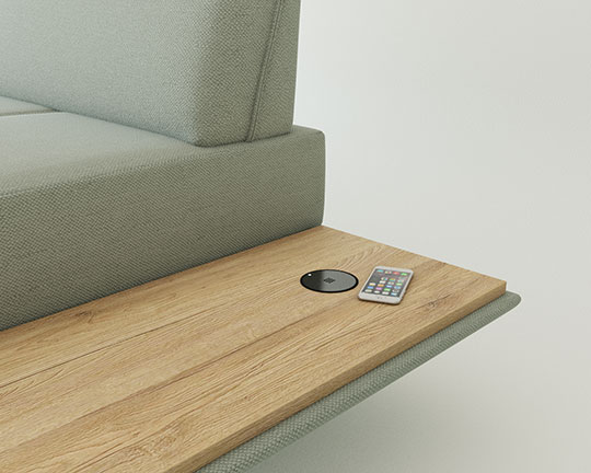Vsak sedežni element ima lahko na koncu (ali v sredini) vgrajeno odlagalno polico poljubne širine, ki je obdelana s hrastovim furnirjem (ali barvo po želji).
