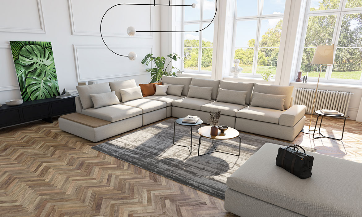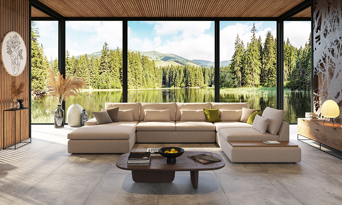 Postavitev v obliki črke U pa je primerna za res velike prostore, saj vzame največ prostora ampak nam nudi tudi največ sedalnih/ležalnih površin.