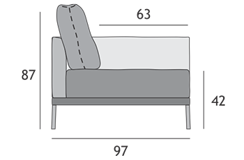 Vsak sedežni element ima lahko vgrajen odprt element oz. zakljucek (skupna blazina s sedežem) poljubne širine.