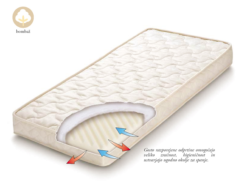 Otroška vzmetnica Merkur Baby je otroško ležišče z jedrom iz ekološko neoporečne pene. Velika prednost jedra z utori je njegova zračnost in s tem tudi večja varnost otroka med spanjem. V primeru, da se malček obrne na trebuh, je možnost zadušitve praktično nemogoča. Prevleka je iz 100% bombaža.